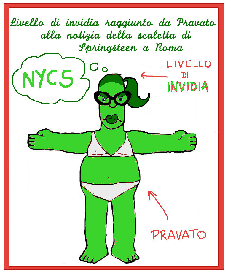 Invece, non ho compreso i segnali che pure arrivavano forti e chiari, e mi sono ostinata a credere che non stesse accadendo nulla di anomalo; del resto, la moglie cornuta è l’ultima a saperlo, anche quando si affanna a pulire le tracce di un rossetto che non porta dai colletti del marito, e io non faccio eccezione. Nonostante stesse diventando abbastanza chiaro che Bruce stesse rivoluzionando le scalette in previsione del concerto Roma, ho continuato a non capire. Per giunta, Lungimiranza Pravato – questo il mio nuovo nome, dall’11 luglio – è rimasta convinta che la scaletta di Roma sarebbe stata estremamente standardizzata, come puntualmente accade ai festival, e lo ha affermato senza tema di smentita ad ogni piè sospinto, per riparare dalla delusione gli amici che, invece, ci sarebbero andati.