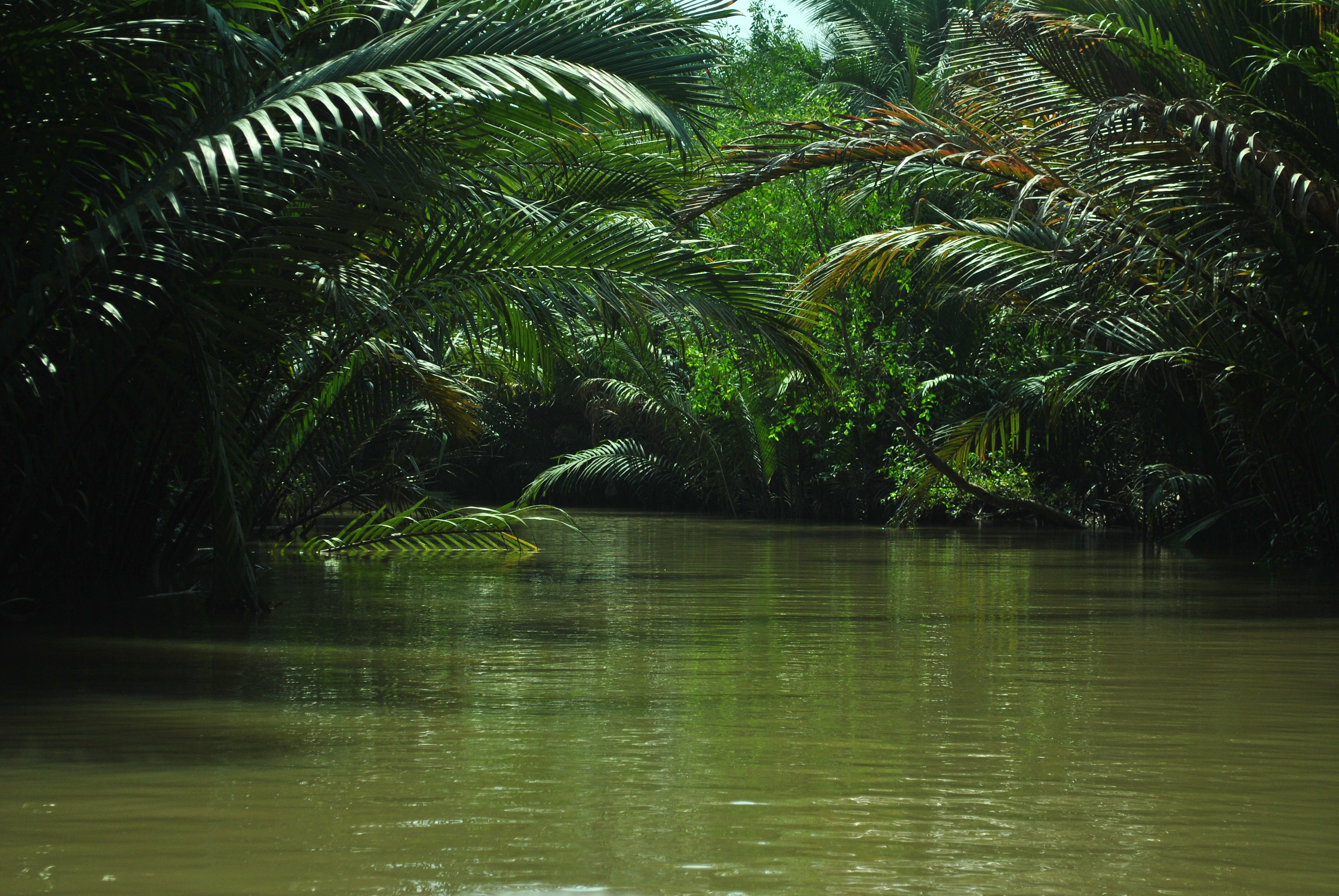 Il villaggio rurale oltre il fiume rimane al riparo dai flussi turistici più ingombranti e nel silenzio dei suoi camminamenti, tra abitazioni umili, coltivazioni, e un’umidità intensa che trasuda grondante dalla vegetazione tutt’intorno, smaltandone ancora di più il verde tipicamente tropicale, pare di fluttuare in una dimensione fiabesca, quasi carrolliana, a cui, però, sia stato risparmiato il dardo dell’angoscia. Ci fermiamo a mangiare in una piccola taverna, cercando di sincronizzare il battito cardiaco alla lentezza del posto. Saigon seems only a dream. Mentre assaporiamo un piatto di riso preparato nel latte di cocco, Cham mi mette nuovamente in guardia, questa volta con tono scherzoso: “Prepare yourself! We are going on a canoe in a while!” Avevo letto sulla Routard che da Ben Tre partono escursioni per navigare i canali secondari del Mekong e speravo davvero di riuscire a insinuarmi nelle viscere di questo possente “dragone” fluviale – come lo chiamano i Vietnamiti – la cui genesi si compie 4500 chilometri più a nord, negli altopiani tibetani, e il cui delta, ramificato in nove braccia, è tra i più estesi al mondo. Ed ora eccomi lì…