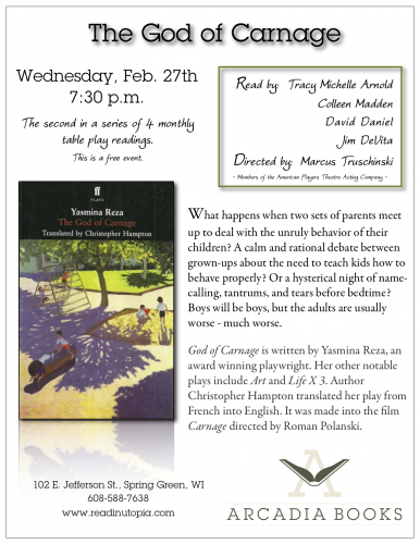 Nel 1997 e nel 1998, Yasmina Reza è stata insignita del Laurence Olivier Award e del Tony Award per la sua pièce, di grande successo, Art. Nel 2009, ha vinto due premi per Il Dio della carneficina, messo in scena per la prima volta a Zurigo nel 2006. Due anni dopo è stato rappresentato a Parigi, con Isabelle Huppert in uno dei ruoli principali. A Broadway ha raggiungo le 450 repliche, e il cast originale includeva James Gandolfini e Jeff Daniels (la pièce è stata rappresentata anche in Israele, al Beit Lessin Theatre, per la regia di Hillel Mittelpunkt). Il Dio della carneficina è stato adattato per il grande schermo nel 2011, dalla stessa Yasmina Reza e da Roman Polanski, con il titolo Carnage. Il film, per la regia di Polanski, aveva come interpreti Jodie Foster, Kate Winslet, Christoph Waltz e John C. Reilly e ha vinto un César (l’Oscar francese) per il miglior adattamento.