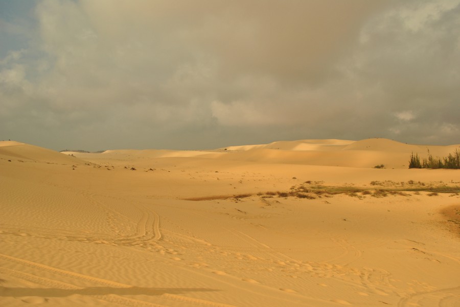 A una decina di chilometri da Mui Ne si apre, unexpected, un deserto rosso. Le dune si susseguono sinuose e morbidamente irregolari per circa mezzo chilometro quadrato, ovvero un’area sufficiente per nascondere agli occhi della ragione, ingannata dagli estemporanei profili tracciati dal vento, la vista dell’orizzonte e di qualsivoglia artificio umano, sicché la mancanza di punti di riferimento precipita lo scenario, all of a sudden, in una dimensione mitica, hors du temps. Dopo solo qualche passo verso il cuore delle dune, là dove lo schiamazzo dei ragazzini si dissolve in una serena afonia, lo spazio perde già la sua linearità geometrica e diviene spazio curvo, multiplo, eternamente cangiante; uno spazio dalla materialità eterea, fatto di dossi viventi – plus que vivants – che si ripetono in un ciclico rincorrersi e sfuggirsi di forme e tonalità. Each dune hides always a surprise.