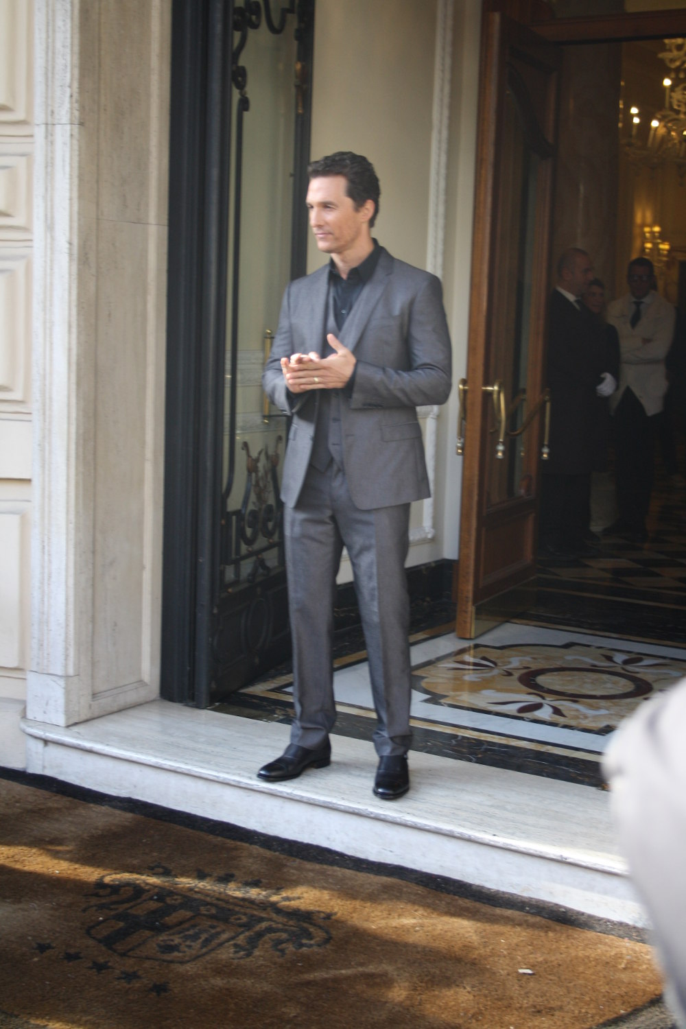 Se la serata della proiezione è stata all’insegna del maltempo, il giorno dopo Matthew McConaughey si presenta alla conferenza stampa baciato da un sole improvvisamente caldo, e da una giornata che sembra essersi rimessa al bello solo per permettergli di farsi fotografare in tutto il suo fascino.