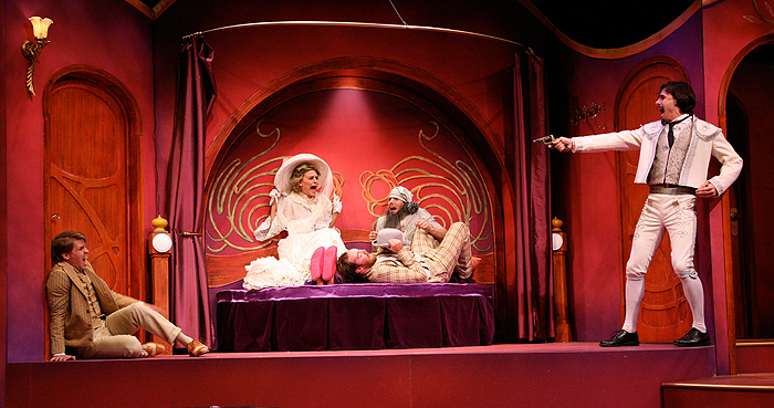 Di primo acchito, è difficile immaginare perché questa sorta di capriola teatrale, i cui protagonisti sono tipi della classe media che quasi vanno in pezzi, ottenne un successo così vasto, a Londra, nel 1966. Ma mi viene in mente che, forse, nei favolosi anni Sessanta, allestire una farsa francese era l’unico mezzo attraverso il quale dimostrarsi sovversivi. All’epoca, infatti, qualsiasi cosa tu facessi veniva interpretata come un prendere posizione. Nella Londra liberale e permissiva degli anni Sessanta, il solo avere dei rapporti sessuali si convertiva in una dichiarazione politica e morale – indipendentemente dal fatto di averli con un singolo partner, con più di uno o anche solo praticando l’autoerotismo. Le pièce di Feydeau, invece, restavano e sempre resteranno meravigliosamente e sfrenatamente apolitiche e amorali.