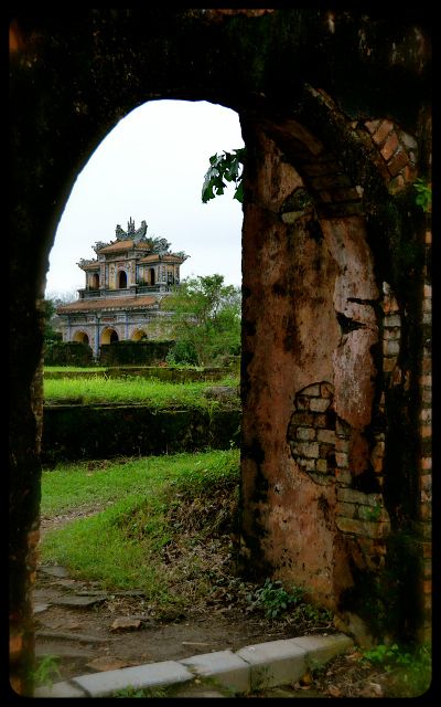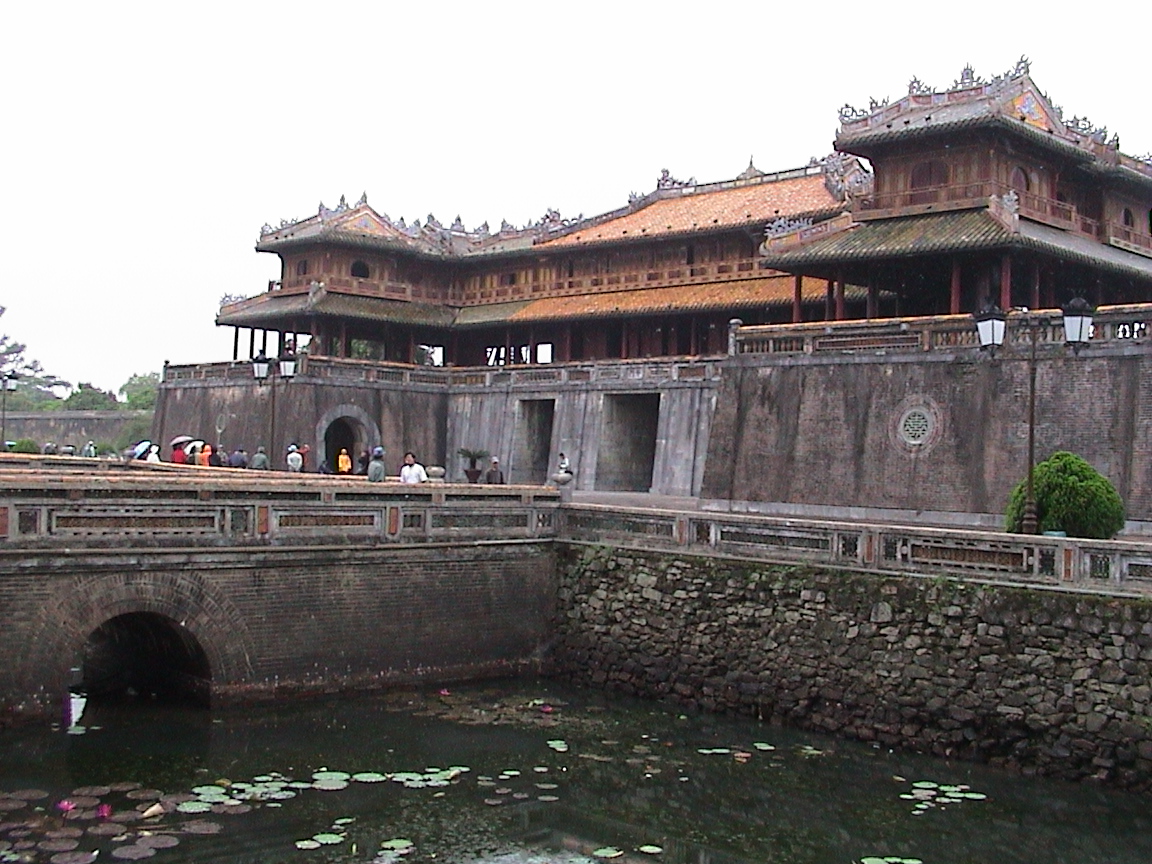 Hué, antica capitale del regno di marca Nguyen per quasi un secolo e mezzo (dal 1802 al 1945), dista appena 200 chilometri da Hoi An. Questa volta il tragitto in bus è molto più agevole del precedente: Nessuna lotta contro i bisogni primari, né contro gli odori sulfurei delle gastroenteriti altrui. Tonalità verdeggianti, qualche casa, spiagge di risaie fin laddove la prospettiva è riconfigurata da speroni montagnosi, la cui cima affonda nel mistero d’un cielo impenetrabile e senza squarci: voilà le paysage du centre du Vietnam. Queste sono le immagini cristalline che rapprendono la mia attentione e che scivolano a lato dei finestrini come tante gocce di pioggia, il cui lento singhiozzare verso il fondo del bus verga la visione con striature di malcelata malinconia.