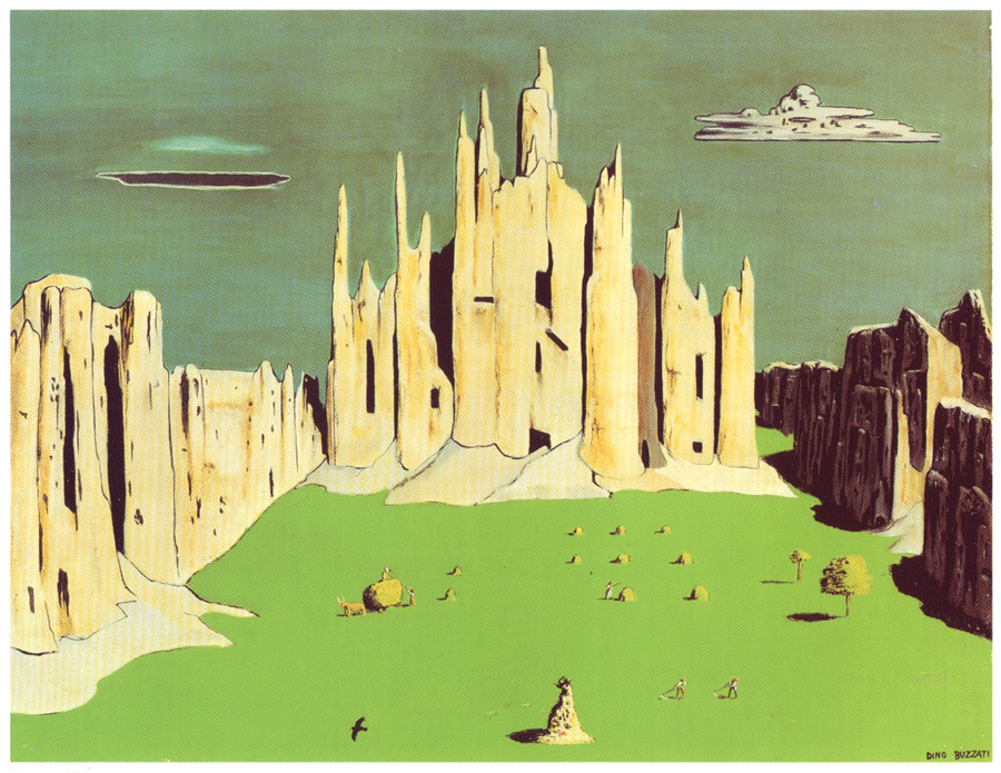 Il presente saggio è tratto dai Cahiers Buzzati N. 1, Éditions Robert Laffont, Paris 1977, pagg. 85-133. L’autore è Yves Panafieu. La traduzione è a cura di Annamaria Martinolli. Si ringraziano le Éditions Robert Laffont per l’autorizzazione alla traduzione.