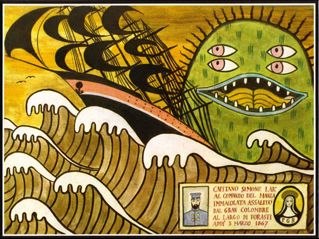 Altrove, l’allegoria sarà, viceversa, spogliata di ogni tipo di ambiguità grazie alle didascalie dello stesso Buzzati; il fantasma di Martina, ad esempio, che sempre ne La colonna infame annuncia la morte di Viscardo, viene descritto fin da subito come uno spirito inviato a scopo di vendetta. Nessuno nutre alcun dubbio in proposito: né il lettore, né lo spettatore.
