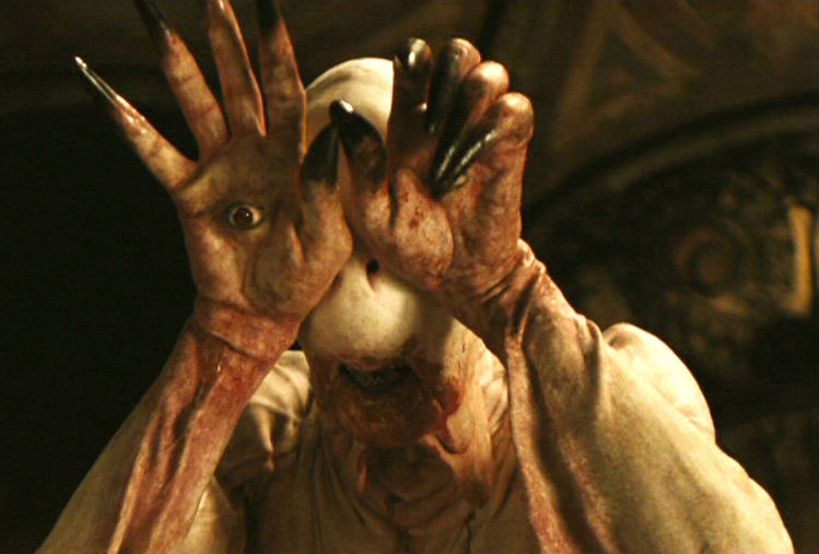 Guillermo Del Toro non cerca di accattivarsi il pubblico delle adolescenti di oggi, quasi tutte glitter, smartphone e ostentata superficialità, ma al contrario si pone l’obiettivo di mettere in scena la cruda realtà, una realtà difficile da digerire anche nel suo lato fittizio. Le scene fantasy, infatti, in cui Ofelia interagisce con il fauno, non hanno nulla di rassicurante, e lo stesso interlocutore della bambina ha un aspetto tutt’altro che confortante. Ne consegue che il regno immaginario in cui la ragazzina si immerge riflette alla perfezione la cupezza del contesto storico in cui si trova a vivere: è come se Ofelia fosse un’Alice attraverso lo specchio costretta a combattere, anche nell’irrealtà, contro quelle paure che tormentano la sua adolescenza. Niente fronzoli, bacchette magiche o principi azzurri, dunque, ma rospi giganti che vomitano bile, sanguisughe che si attaccano al viso, mostri divoratori di carne umana con gli occhi nelle mani e infinite quantità di melma in cui sprofondare fino al collo. Viene da chiedersi, ed è in effetti questo il quesito che il regista messicano vuole sollevare nello spettatore, quale sia la differenza tra un mondo fantastico in cui l’angoscia regna sovrana e la vita vera della protagonista in cui la gente muore sotto tortura o partorendo tra terribili sofferenze. La verità è che la differenza non c’è, perché ognuno di noi, come Ofelia, proietta nei propri sogni le esperienze che si trova costretto ad affrontare quotidianamente.
