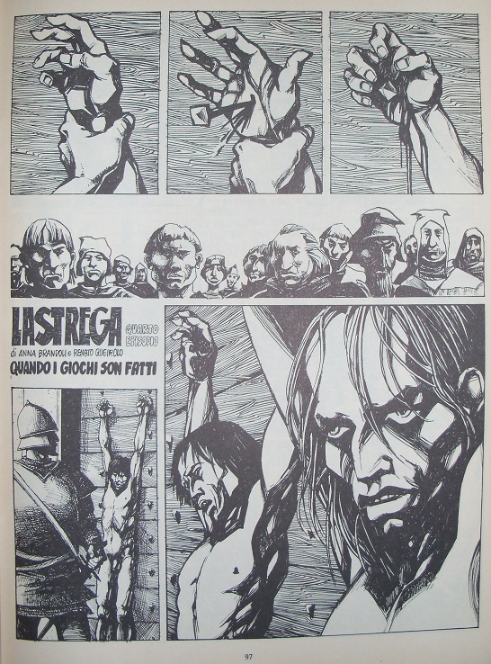 AB: Io ho cominciato a disegnare fumetti a trent’anni senza avere mai avuto alcuna esperienza prima (vengo dalla pubblicità). Chiaramente disegnavo anche prima, ma disegnavo altre cose e quindi io e Queirolo ci siamo inventati questo lavoro. Visto che non avevo una tecnica compatibile con il fumetto mi ispiravo a quei disegnatori che mi piacevano di più. Direi principalmente Toppi e Pratt ma certamente tra questi figurava anche Muñoz: insomma erano questi i Maestri che piacevano a me. E quindi La Strega era caratterizzata da questo segno un po’ particolare fatto col pennino.