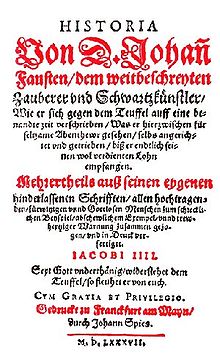 La figura del Dottor Faust compare per la prima volta in ambito letterario in quella che può essere definita l’asse principale della leggenda, perché determina la struttura fondamentale del mito e le varianti che lo rendono definibile come tale. Nel 1587 l’editore tedesco Johann Spiess pubblicò il volume Historia Von Doktor Johann Fausten, che si sosteneva essere basato su fatti reali e che aveva lo scopo di rappresentare per i cristiani una lettura esemplare. La traduzione del libro arrivò nelle mani del drammaturgo Christopher Marlowe, che ne trasse l’eccelsa opera teatrale The Tragical History of Doctor Faustus, rappresentata per la prima volta agli inizi dell’ultimo decennio del XVI secolo. L’opera di Marlowe funse da modello per tutti i Faust scritti e allestiti nel XVII e XVIII secolo finché Johann Wolfgang von Goethe pubblicò il suo Faust, in due parti, nel 1832, introducendo importanti modifiche tra cui la presenza di Margherita e la salvezza dello stesso Faust. Già nel XX secolo la figura di Faust si adeguò ai ragionamenti artistici, filosofici o politici di ogni autore – particolare attenzione merita l’opera Doktor Faustus di Thomas Mann pubblicata nel 1947 – .