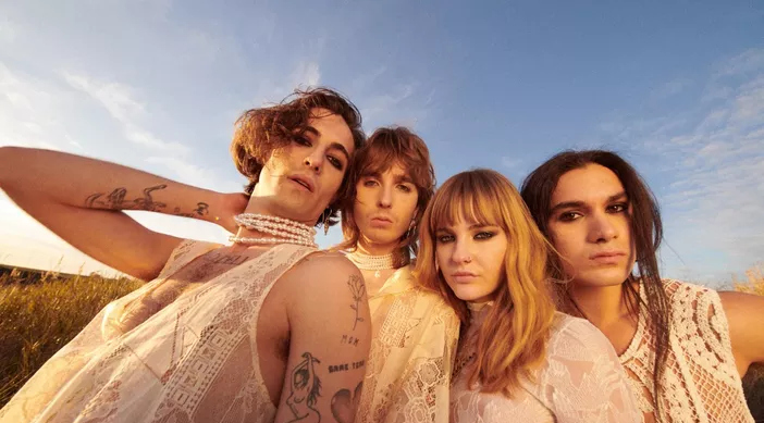 Måneskin – che in danese, lingua madre della bassista Victoria, significa “chiaro di luna” – è un gruppo musicale italiano formatosi a Roma nel 2016 e composto da Damiano David, Victoria De Angelis, Thomas Raggi ed Ethan Torchio.