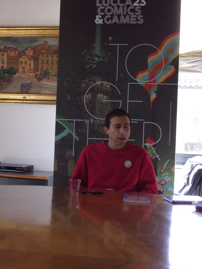 È un incontro con la stampa allegro e informale quello che ha luogo con Alessandro Perugini in arte Pera (conosciuto anche come Pera Toons), forse complice il fatto che a far parte della “stampa” ci sono anche un paio di bambini un po’ intimoriti dall’incontro col loro idolo ma che comunque troveranno il coraggio, anche se per interposta persona, di fargli qualche domanda.